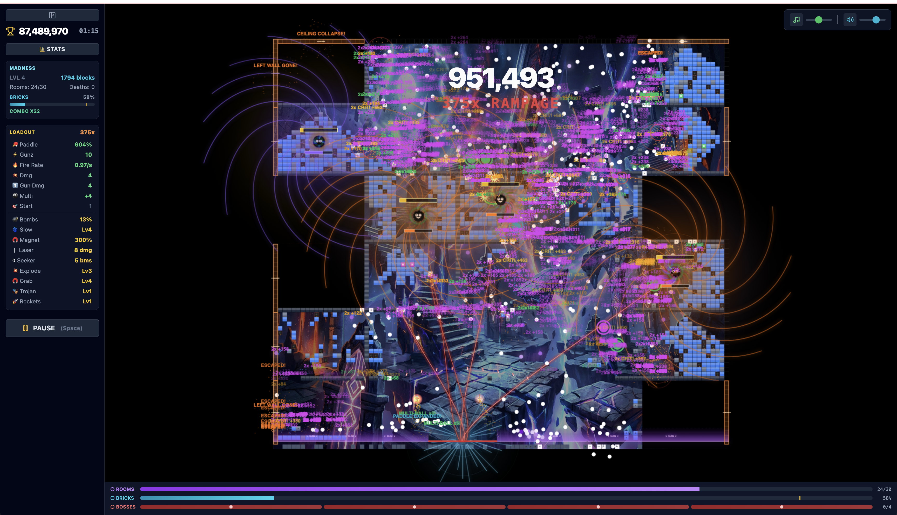 • Powerup Stacking - Collect multiball, paddle growth, singularity hunting laser beams, and fire rate upgrades. Stack them. Break everything.